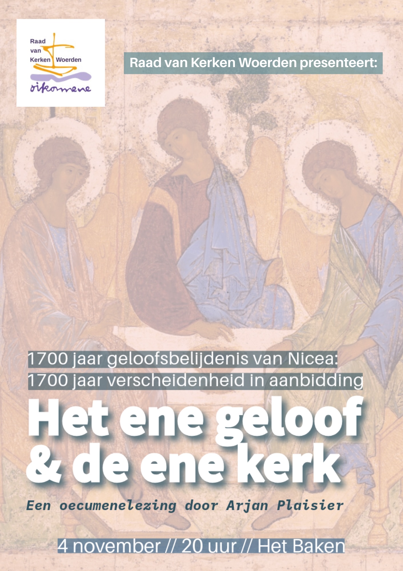 Het is 1700 jaar geleden dat in het jaar 325 christenen bij elkaar kwamen in Nicea (het huidig Turkije). Tot kort daarvoor werden christenen vervolgd in het Romeinse Rijk. Daar kwam verandering in met de bekering van keizer Constantijn tot het christendom. Onder zijn beschermheerschap konden vertegenwoordigers van christelijke geloofsgemeenschappen uit alle windstreken van de bewoonde wereld nu bijeenkomen. Het was de eerste kerkvergadering in de geschiedenis! Daarom heet deze bijeenkomst het eerste oecumenische concilie. Doel was om eenheid in de kerk te bereiken. Het resulteerde onder andere in de Geloofsbelijdenis van Nicea.